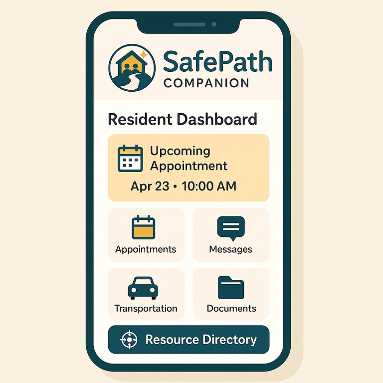 SafePath Companion™ brings simplicity and organization to supportive housing. It helps residents stay connected, informed, and in control of their journey toward independence.